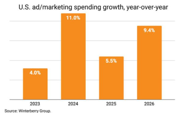 The U.S. advertising and marketing economy is entering 2026 with a tailwind—and a warning label.